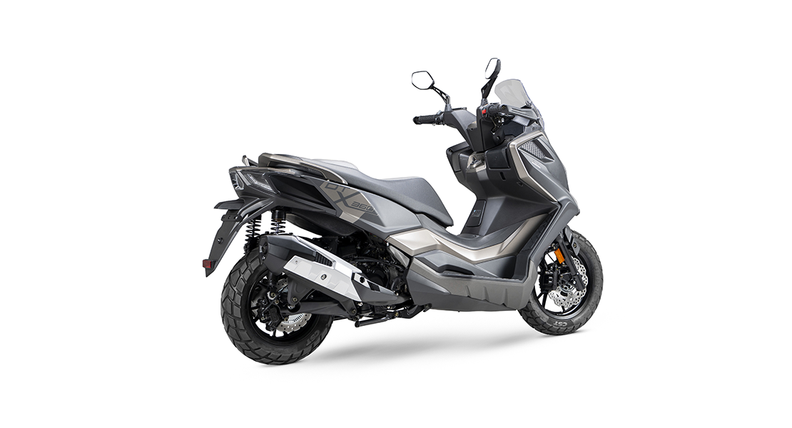 Forte dell’esperienza nel settore dei maxi scooter, KYMCO reinventa uno dei suoi best seller, non solo nelle prestazioni, ma anche nella sostanza; il l nuovo DTX si traveste da “Adventure Crossover”, senza abbandonare le sue ormai consolidate caratteristiche della gamma Downtown e diventa capace di offrire anche al motociclista più curioso la possibilità ricercare l’avventura nella vita quotidiana, senza abbandonare la comodità e la sicurezza di un commuter. Proporzioni armoniose, layout sportivo al punto giusto e parafango anteriore alto sono solo alcune delle caratteristiche che permettono al DTX360 di mostrare la sua anima dual sport. Il manubrio diventa più largo per permettere un miglior controllo anche su pavimentazione irregolare e la posizione di seduta del pilota si alza per migliorare la visibilità su strada. La strumentazione è digitale e appositamente progettata per fornire massima leggibilità in tutte le condizioni, Il sistema Keyless permette di accedere al veicolo con estrema facilità, mentre il sistema di controllo della trazione TCS conferisce la massima sicurezza in ogni situazione. I fari anteriori con luci a tubi di LED e dettagli cromati/nero lucido, le lenti faro posteriori in trasparente non pigmentato, gli inserti protezione marmitta nero lucido si fondono armoniosamente con le grafiche distintive posizionate sui parafanghi posteriori di colore antracite opaco ben integrate con la carrozzeria: oltre all’ abbinamento colore nero odolo opaco/antracite, sportivo e di carattere, è anche disponibile il nuovo nero odolo opaco/arancio, il mix perfetto di grinta ed energia, capace di farsi riconoscere ovunque.